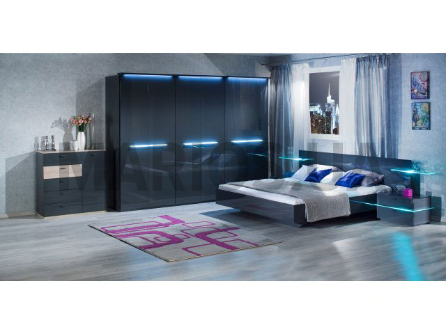 286.00см x 150.00см x 88.00см Вес0.00кг Характеристики мебели МатериалДСП Кровать Римини MW1400 - темно-серого цвета с подсветкой. Характеристики: Длина: 286 см Ширина: 150 см Высота изголовья: 88 см Спальное место: 140х200 Основание под матрас: буковые ламели. Материал: ДСП. Комплектация: По бокам расположены 2 открытые стеклянные полочки с LED подсветкой. Фурнитура производства Турции.