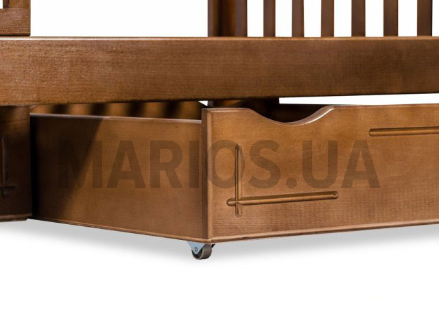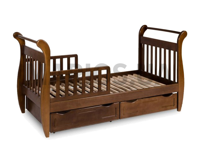 145.00см x 75.00см x 75.00см Характеристики мебели Материал массив бука Кровать-санитонированная с ящиками отличается оригинальным дизайном и отличной эргономичностью. Форма кровати, с плавными изгибами изголовья и изножья, внешне напоминает причудливые сани. Великолепная обработка древесины обеспечивает идеальную глянцевую поверхность изделия. В целях безопасного сна, модель с обеих сторон защищена боковинами. Для дополнительного комфорта кровать оснащена двумя бельевыми ящиками, где удобно хранить игрушки и другие личные вещи. Сочетая кровать с качественным ортопедическим матрасом, сон Ваших детей будет крепким и здоровым. Размеры спального места кровати-саней тонированной с ящиками: Длина, см Ширина, см 140 70 Габариты кровати: 145х 75см. Высота: 75см.