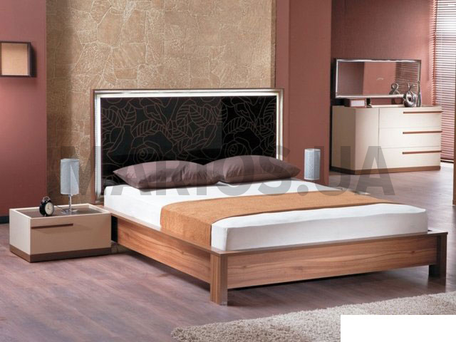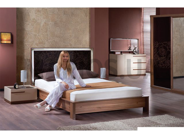 Цвет изголовья: шоколад с рисунком роза. Цвет царги: лионский орех (Kronospan).