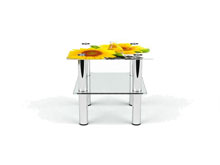 60.00см x 60.00см x 50.00см Характеристики мебели Материал каленное стекло, хромированный металл Круглый журнальный стол с полкой Sunflower 60х60. Материал столешницы: каленное стекло. Материал опор: хромированный металл.