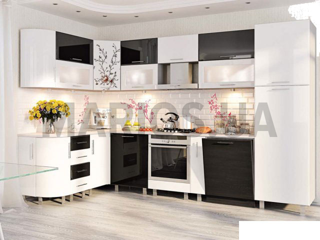 320.00см x 170.00см x 0.00см Характеристики кухонного гарнитура Материал корпуса МДФ, ПВХ Материал фасада МДФ, ПВХ Кухня-172 Хай-тек 3,2х1,7 м имитирует собой своеобразную черно-белую шахматную доску, которая позволит Вам, подобно королевы, делать ходы в любую сторону.