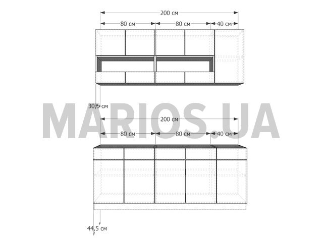 Кухня 2,0 Алина Кухня 2,0 Алина состоит из модульных кухонных элементов: Тумба Алина верх 80х71,8 витрина - 2 шт. Тумба Алина верх 40х71,8 - 1 шт. Тумба Алина низ 80х85 - 1 шт. Тумба Алина низ 80х85 мойка - 1 шт. Тумба Алина низ 40х85 шкафчик - 1шт. Важно: В стоимость кухонных тумб не входит стоимость столешницы.