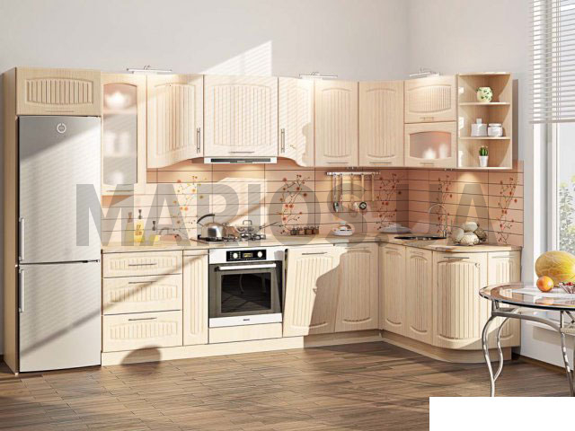 В стоимость кухни входит базовая комплектация и цена за столешницу, дополнительные опции оплачиваются отдельно.