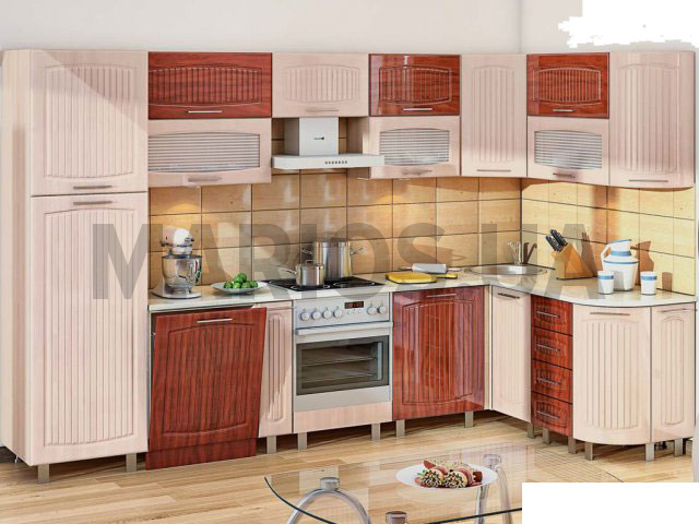 170.00см x 320.00см x 0.00см Характеристики кухонного гарнитура Материал корпуса МДФ, ПВХ Материал фасада МДФ, ПВХ Кухня-293 Сопрано 1,7х3,2 м удивительным образом сочетает в себе стильный дизайн и высочайший уровень качества составляющих материалов.