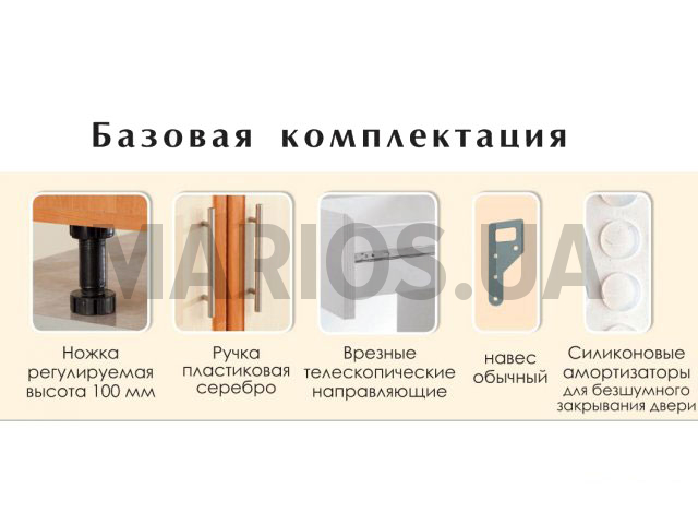 В стоимость кухни входит базовая комплектация и цена за столешницу, дополнительные опции оплачиваются отдельно.