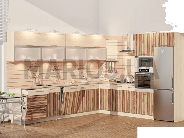 303.00см x 320.00см x 0.00см Характеристики кухонного гарнитура Материал корпуса ЛДСП Материал фасада ЛДСП Кухня-99Софт Комби 3,03х3,2 м гармонично заполнит собой имеющуюся площадь, подарив Вам взамен стильный и функциональный гарнитур.