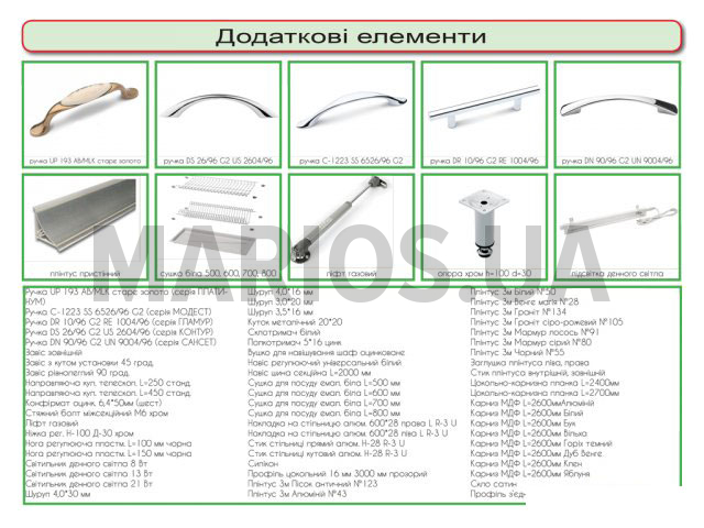 В стоимость кухни входит базовая комплектация и цена за столешницу.