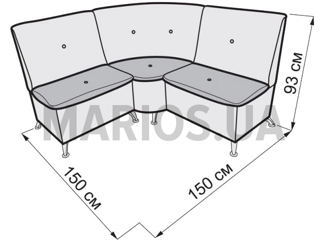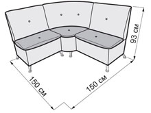 150.00см x 150.00см x 93.00см Характеристики дивана (кресла, тахты, углового дивана) Основа сидения Пенополиуретан Бельевой ящик Есть Если у Вас большая семья или Вы любите часто принимать гостей, кухонный уголок Изабэль создан специально для Вас! Он способен уместить до семи человек благодаря большому количеству мест для сидения, ведь помимо дивана, в комплект также входят два удобных пуфа. Обивка легко моется, а наполнители дарят эргономичность изделию. Оснащен нишей для хранения различных принадлежностей. Размеры: высота: 93 см;ширина: 150 см;длина: 150 см. Материалы: ткань, кожзам или кожа;пенополиуретан. В обивке дивана Изабэль могут применяться ткани из каталога