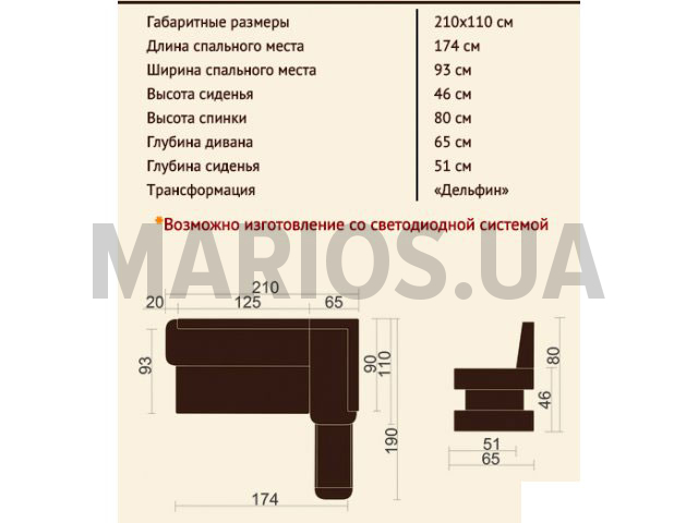Изюминкой кухонного диванчика Немо является подсветка.Технические характеристики: