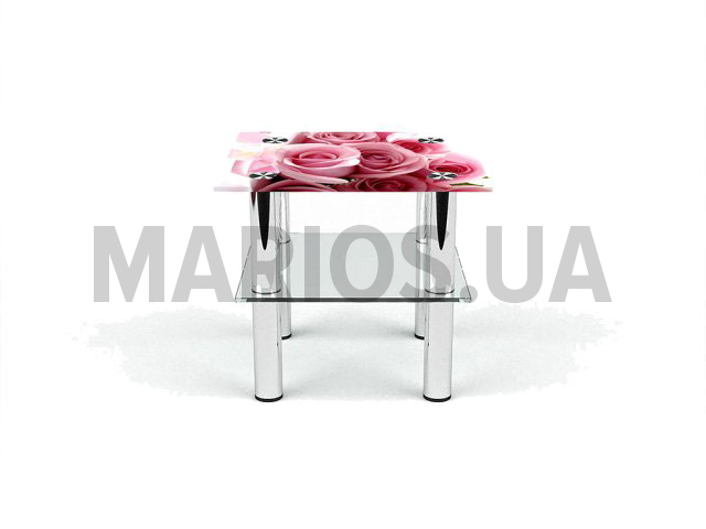 40.00см x 40.00см x 45.00см Характеристики мебели Материал каленное стекло, хромированный металл Квадратный журнальный стол с полкой Pink Roses 40х40. Материал столешницы: каленное стекло. Материал опор: хромированный металл.