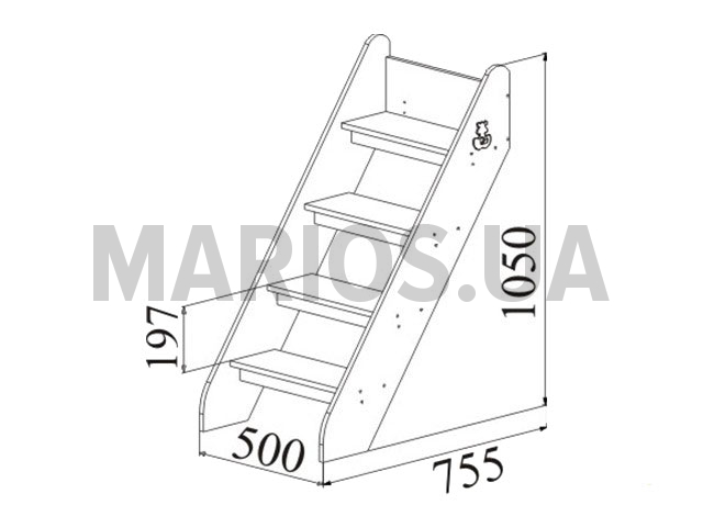 50.00см x 75.50см x 105.00см Характеристики мебели Материал ДСП, МДФ Лестница приставная МДМ-4 Маугли оранж. Применяется к кровати-чердак Маугли МДМ-2. Материалы: корпус - ДСП 16мм немецкого концерна Кроно Украина; фасады - глянцевая МДФ с фрезеровкой; торцы деталей оклеены ПВХ-кромкой фирмы MAAG. Цвета: клен/оранж глянец, клен/лайм глянец.