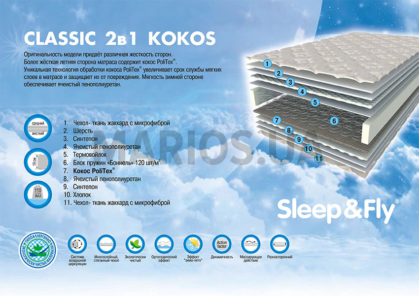 | 11 | Матрас "Classic 2 в 1 kokos'' Sleep&Fly - 150x190 см | 8 171 грн. |