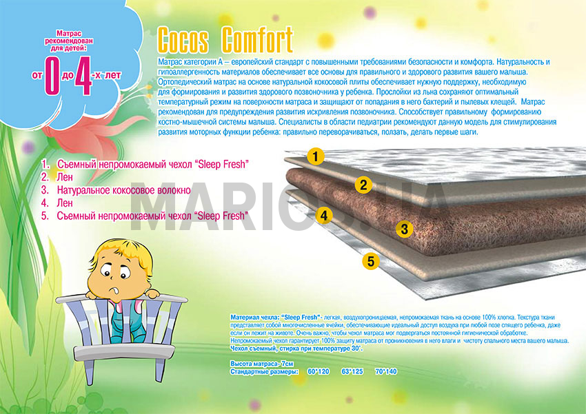 | 7 | Матрас "Cocos Comfort Red" Herbalis KIDS - 60x120 cм | 3 566 грн. |