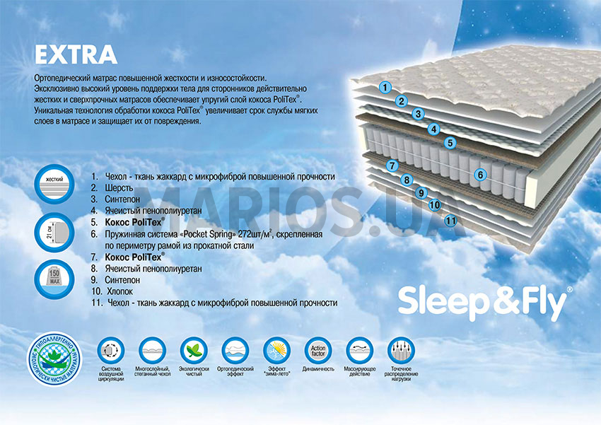 | 11 | Матрас "Extra'' Sleep&Fly - 150x190 см | 13 537 грн. |