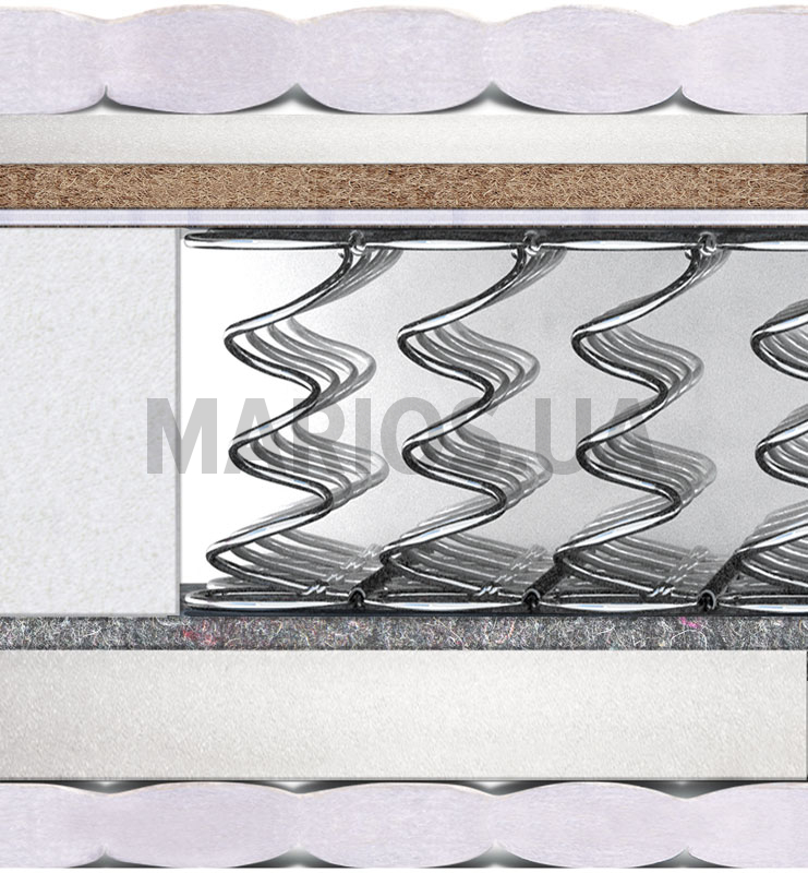 Мягкая зимняя сторона матраса Флоренция и жесткая летняя ст орона для обеспечения комфорта прошиты дополнительным слоем натуральной шерсти и 100% хлопком. Классический пружинный блок Bonnel в сочетании с такими наполнениями, как пенополиуретан высокой плотности и натуральная кокосовая койра (с летней стороны) создают комфортную ортопедическую поддержку тела.