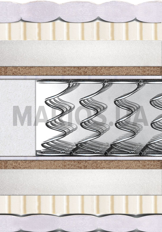 Эти качества и прекрасные ортопедические характеристики достигаются благодаря использованию натуральных наполнителей - латекса и кокосовой койры.Классический пружинный блок Bonnelобеспечивает комфортную поддержку Вашего тела во время сна. Пенополиуретан повышенной плотности создает упругость и комфорт. Матрас обеспечивает оптимальный температурный режим, снабжен«аэраторами» для проветривания.
