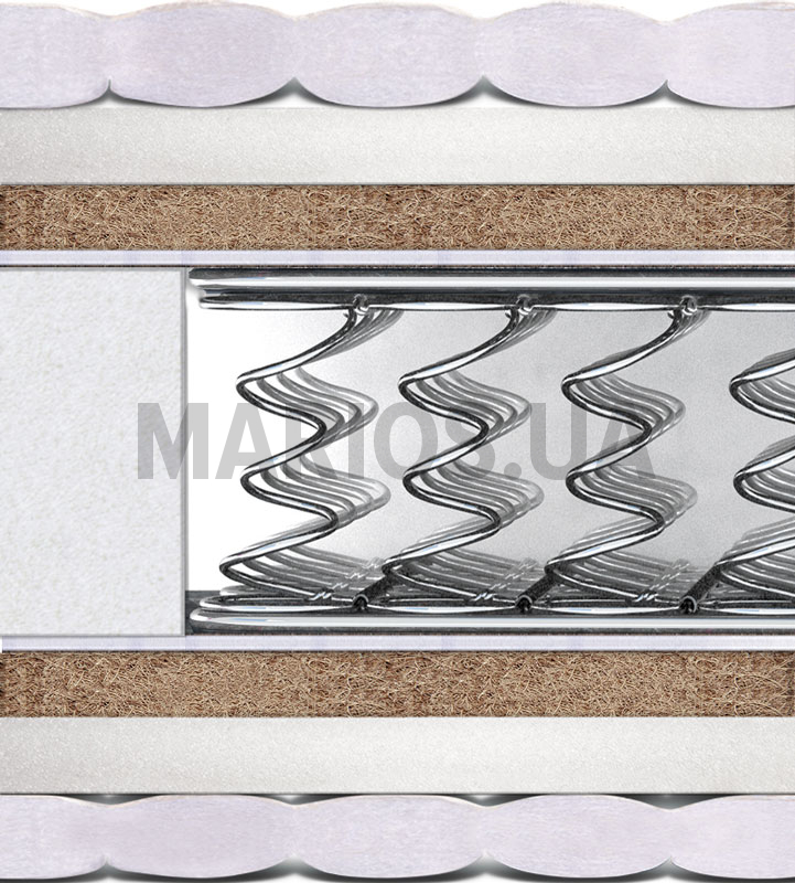 Сочетание классического пружинного блока Bonnel с натуральным материалом - кокосовой койрой обеспечивает комфортную упругую поддержку Вашего тела во время сна. Матрас создает оптимальный температурный режим, снабжен «аэраторами» для проветривания.