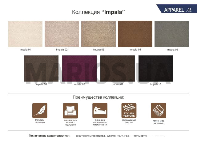 Основные преимущества ткани Микрофибра Impala 08: удобная в эксплуатации;