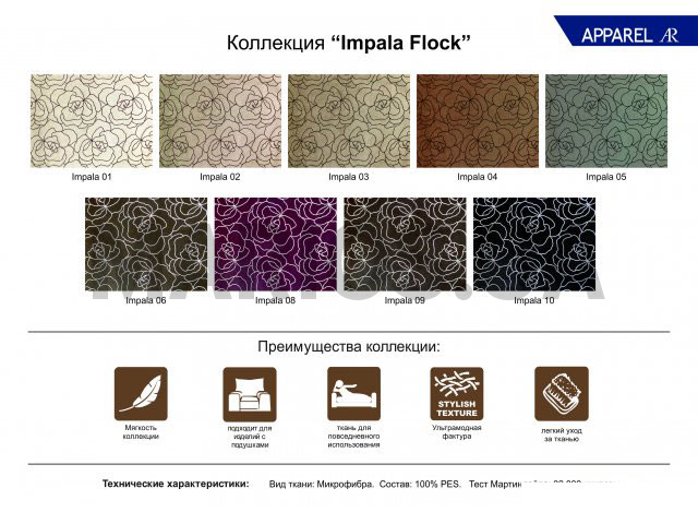 Основные преимущества ткани Микрофибра Impala Flock 08: удобная в эксплуатации;