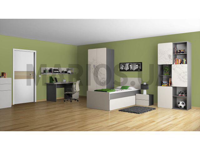 Характеристики мебели Материал ламинированное ДСП Дети очень быстро растут. И по истечении времени у него появляются новые желания, изменяется вкус и потребности. Это касается и обустройства детской комнаты, замена мебели, интерьера и дизайна. Подростковый возраст - это новые впечатления, эмоции, кино, спорт и друзья. Молодежный комплект 2pir-2 - это комплект мебели, который способен создать благоприятные условия для правильного эмоционального развития, а также для спокойного сна и отдыха. В комплект входит: подростковая кровать со спальным местом 90х200. Кровать оснащена вместительным ящиком для хранения белья или вещей;шкаф двухдверный с полкой и штангой для висящей одежды. По желанию можно заказать полки для шкафа. На дверках шкафа нанесен рисунок, что способствует созданию роскошного интерьера в комнате.письменный стол. Обеспечит комфортные условия для работы за компьютером или учебным процессом. Имеет два выдвижных ящика;тумба прикроватная, служит ночным столиком на него можно поставить лампу или будильник. Состоит из двух выдвижных ящиков;навесная полка, в комплекте две штуки. Можно повесить их над рабочим местом и сложить учебники или другие аксессуары;комод. Обеспечит местом для хранения вещей. Состоит из двух выдвижных ящиков и двух шкафчиков с полками;необычной формы стеллаж с дверками. Дверки находятся не на всех полках, что создает неповторимый внешний вид. Изюминка состоит в том, что на дверки нанесен рисунок в виде мотоцикла. Весь комплект не имеет ручек для открытия, все дверки, ящики и шкафчики оснащены системой push-up. Мебель изготовлена из ламинированной плиты многослойной структуры - прочного и износоустойчивого материала, поэтому прослужит Вам ни один десяток лет. Размеры кровати: Высота, см Длина, см Ширина, см 97 205 95 Размеры шкафа двухдверного: Высота, см Ширина, см Глубина, см 216,5 96,5 58 Размеры письменного стола: Высота, см Ширина, см Глубина, см 75 140 65 Размеры тумбы прикроватной: Высота, см Ширина, см Глубина, см 40,5 51,5 42 Размеры навесной полки: Высота, см Ширина, см Глубина, см 30 90 20 Размеры комода: Высота, см Ширина, см Глубина, см 101 97,5 47 Размеры стеллажа с дверками: Высота, см Ширина, см Глубина, см 216,5 96,5 45