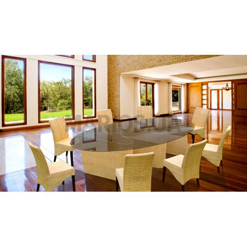 0.00см x 0.00см x 0.00см Вес0.00кг Характеристики мебели Материалнатуральный ротанг, стальная рама, каленое стекло с фигурной кромкой, красное дерево Обеденный комплект Дрезден (стол + 8 стульев)Материал: натуральный ротанг стальная рама каленое стекло с фигурной кромкой красное деревоСостав комплекта:Овальный стол 8 стульевГабариты:Стол - 300х150х73 Кресло - 47х60х90Цвет - ротанг медового оттенка, подушки молочного цвета Гарантия производителя - 1 год.