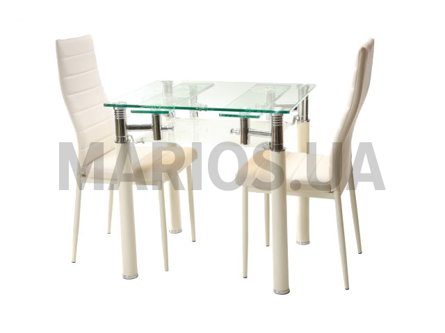 60.00см x 75.00см x 75.00см Характеристики мебели Материалстекло, сталь. Обеденный стол Т-225 кремовыйРазмеры:Ширина - 75 см.Глубина - 60 см.Высота - 75 см.В разложенном виде максимальная ширина - 110 см.Материал столешницы: стекло.Материал основания: хромированная сталь.Вид: раскладной.Особенность: столешница с кремовыми цветами, кремовая полка с прозрачными цветами.