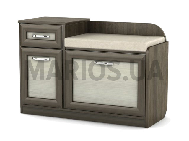 30.00см x 90.00см x 64.50см Характеристики мебели Материал ДСП ламинированная 16мм Обувная тумба-105 имеет крайне практичную конструкцию в своей основе. Состоящая из двух откидных секций и выдвижного ящичка, она позволяет поместить в нее не только обувь, но и даже прочие мелкие принадлежности. Имеет гладкую поверхность, которую также можно использовать, разместить на ней необходимые Вам вещи, зеркало или просто элементы декора. Материал: ДСП ламинированная. Кромка остальных торцов изготовлена из меламина. Возможна кромка из ПВХ по дополнительной цене. Подобрать нужный оттенок Вы можете использовав палитру цветов Тиса-мебель.