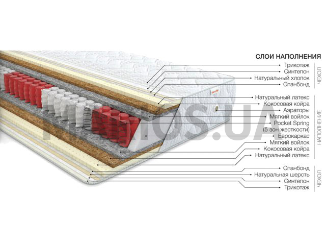 190.00см x 80.00см x 20.00см Матрасы Допустимая нагрузка120кг Пружинный блок"Pocket spring" Состав1) трикотаж; 2) синтепон; 3) шерстяная вата; 4) спанбонд; 5) латекс; 6) кокосовая койра; 7) мягкий войлок; 8) пружинный блок Pocket spring; 9)мягкий войлок; 10) кокосовая койра; 11)латекс; 12) спанбонд; 13) хлопковая вата; 14) синтепон; 15) трикотаж; 16) еврокаркас; 17) аэраторы. Эффект зима-летоЕсть Комфи - это двухсторонний, жесткий ортопедический матрас, который изготовлен на пружинном блоке "Pocket spring" (5 зон жесткости), и сочетается с таким наполнителем, как кокосовая койра.Волокно кокосовых орехов впитало в себя нежное солнце и бриз тропических широт, поэтому отдыхать на таком матрасе Вы будете с комфортом и с удовольствием!Комфи будет хорошо сочетаться сkrovati-i-karkasi/filter-3-14/4-32/">кроватью размером 80х190. Состав: трикотаж; синтепон; шерстяная вата; спанбонд; латекс; кокосовая койра; мягкий войлок; пружинный блок Pocket spring; мягкий войлок; кокосовая койра; латекс; спанбонд; хлопковая вата; синтепон; трикотаж; еврокаркас; аэраторы. Технические характеристики: допустимая нагрузка на одно спальное место до 120кг; высота матраса: 20 см. Потребительские свойства: ортопедический эффект; анатомический эффект; эффект "зима-лето" съемный трикотажный чехол на змейке.