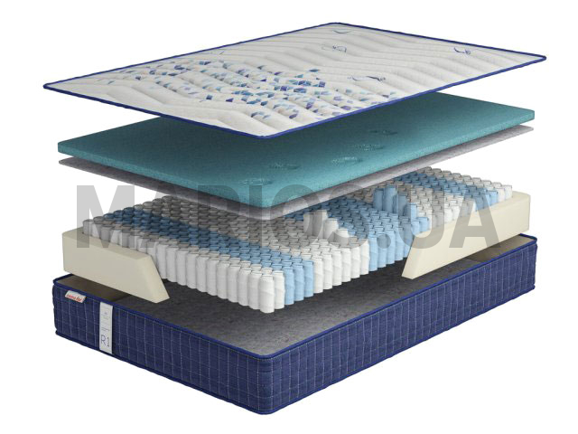 Spring Foam. Эффект зима-лето нет Ортопедический матрас Come-for R1 нестандартный размер (м2) Основа - 7-зонный независимый пружинный блок Pocket Spring. Состав:чехол: ткань Crystal Blue,синтепон,флизелин. наполнение: MemoryGel;жесткий войлок;Pocket Spring Sky 7;жесткий войлок;Spring Foam. Технические характеристики: жесткость - средняя;нагрузка на спальное место - 140 кг;высота матраса - 26 см;вес - 14,5 кг/м.кв. Потребительские свойства: ортопедический эффект;анатомический эффект;усиленная защита периметра "Контур 360" (каркас на 60% шире);Pocket Spring Sky 7 (7 зон жесткости);технология Biorythmic;технология Thermo Control;технология многослойного стегания;циркуляция воздуха;микромассаж. Гарантия: 5 лет. Срок эксплуатации: 20 лет.