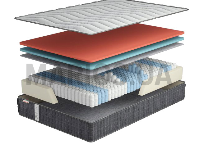 Spring Foam. Ортопедический матрас R6 180х190 - представитель премиум серии Come-for Regeneration, особенностью которой является способность стимулировать естественные силы организма к восстановлению.Основа - независимый пружинный блок Pocket Spring Sky 7. Усовершенствованная пружина Sky 7 имеет большую высоту (18 см), прочность и удвоенную рабочую амплитуду. Состав:чехол: ткань Graphite, синтепон, флизелин. наполнение: Soft Foam; Ortho Foam; жесткий войлок; Pocket Spring Sky 7; жесткий войлок; Spring Foam. Технические характеристики: жесткость - средней жесткости; нагрузка на спальное место - 140 кг; высота матраса - 26 см; вес - 13,3 кг/м.кв. Потребительские свойства: ортопедический эффект; анатомический эффект; усиленная защита периметра "Контур 360" (каркас на 60% шире); Pocket Spring Sky 7 (7 зон жесткости); технология Biorythmic (внедрение в структуру ткани молекул природных минералов, стимулирующих биопроцессы в организме); технология многослойного стегания (глубокая прошивка слоев, отсутствие клея в верхних настилочных слоях); циркуляция воздуха; термоклей HotMelt (безопасный, антиаллергенный, не содержащий растворителей твердый материал, который расплавляют для соединения слоев). Гарантия: 5 лет.Срок эксплуатации: 20 лет.