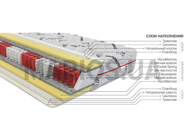 200.00см x 80.00см x 22.00см Матрасы Допустимая нагрузка120кг Состав1) трикотаж; 2) синтепон; 3) спанбонд; 4) пена Foam Mono; 5) термовойлок; 6) пружинный блок Pocket Spring; 7) термовойлок; 8) пена Foam Mono; 9) спанбонд; 10) синтепон; 11) еврокаркас; 12) трикотаж. Эффект зима-летонет Ортопедический матрас Статус - это отличная двухсторонняя модель, которая организует Вам максимально комфортное спальное место, даже не смотря на свою обманчивую простоту.Изделие изготовлено из качественных материалов, поэтому организм будет полностью расслабляться и набираться сил во время сна. А незивисимый пружинный блок Pocket Spring будет заботится о состоянии Вашего здоровья и дарить хорошее настроение! Состав: трикотаж - гибкий материал, характерностью которого являются: растяжимость, эластичность, мягкость; синтепон - нетканое синтетическое полотно, состоящее из волокон и имеющее объемную структуру; <span style="font-family:Arial,sans-serif; font-size:9pt">спанбонд - нетканый материал из расплава полимера, имеющий стойкость к высоким и низким температурам и атмосферным воздействиям; независимый пружинный блок Pocket Spring - система пружин "бочкообразной формы", изготовленных из высококачественной проволоки, где каждая пружина находится в отдельном чехле, что позволяет индивидуально воспринимать нагрузку и гарантирует отсутствие шумов; термовойлок - нетканый материал, состоящий из шерстяных и синтетических волокон, спрессованных при высокой температуре; пена Foam Mono- это модифицированный пенополиуретан, <span style="font-family:Arial,sans-serif; font-size:9pt">ячеистой структуры, который максимально снижает ответное давление на тело, адаптируясь к весу и его специфической форме, что дает возможность Вашим мышцам максимально расслабиться; <span style="font-family:Arial,sans-serif; font-size:9pt">еврокарс. Технические характеристики: допустимая нагрузка на одно спальное место до 120 кг; высота матраса: до 22см. Потребительские свойства: ортопедический эффект; анатомический эффект; противоклещевая пропитка Sanitized; съемный чехол на змейке, (стирка в щадящем режиме при температуре 40<sup>о</sup>С); экологически чистые материалы.