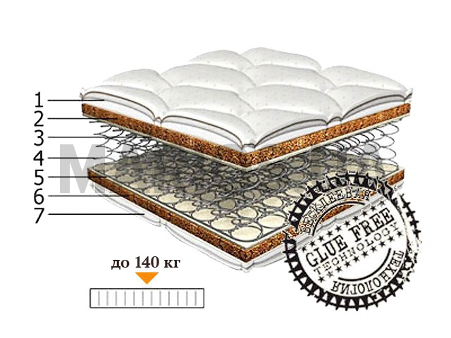 слой кокосовой койры обеспечивает полноценную жесткую поддержку тела, дополняя свойства пружинного блока;
