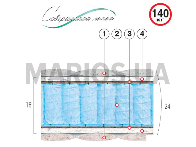 Настил - нетканый материал Velaflex, кокосовая койра Эффект зима-летоесть Ортопедический матрас Велам Black 160х190Ортопедический матрас с максимальной нагрузкой до 140 кг на одно спальное место. Чехол: стеганый на объемном наполнителе Sprut c волокнами шерсти и хлопка Застежка молния с одной стороны бортовой ленты по длине матраса Основная ткань - трикотаж, ткань бортовой части - жаккард Основа - пружинный блок усиленных независимых пружин Pocket Spring Настил - кокосовая койра Настил - нетканый материал Velaflex Потребительские свойства: Пружинный блок Pocket Spring Эффект зима-лето Экологически чистые материалы Воздухопроницаемость Устойчивость к образования аллергенов