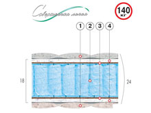 190.00см x 160.00см x 24.00см Матрасы Допустимая нагрузка140 кг на одно спальное место Пружинный блокPocket Spring усиленный СоставЧехол: стеганый на объемном наполнителе Sprut c волокнами шерсти и хлопка (с эффектом зима-лето), жаккард .