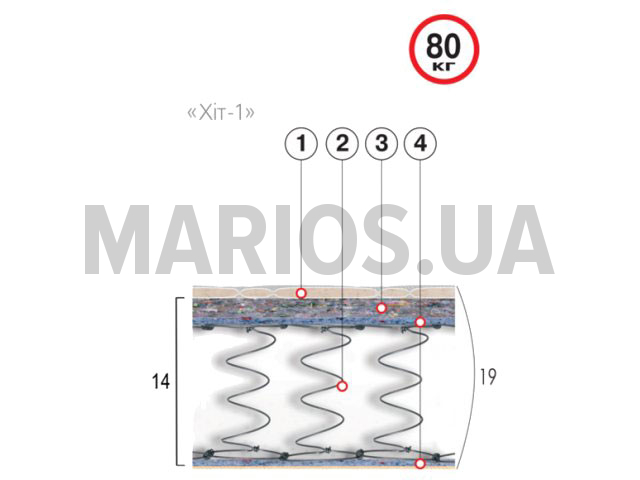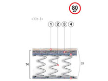 Состав: <u>жаккардовый стеганый чехол</u> с наполнителем "Sprut". Данный наполнитель имеет способность увеличивать эффект упругости и долговечности матраса; <u>пружинный блок Bonnell</u> с диаметром опорного витка 90мм, высота пружин 80мм (плотность от 100шт/м2) - это прочные конусовидные пружины, соединенные между собой, благодаря которым равномерно распределяется вес человека по всей поверхности, поддерживая позвоночник в правильном положении; <u>нетканый настил <u>"Thermoflex" - </u></u>эластичный и износостойкий материал, который имеет отличную воздухопроницаемость. Увеличивает высоту матраса и способствует правильному распределению нагрузки на поверхность матраса<u><u>;</u></u> <u>жесткий настил "Thermofelt</u>" - продукт термического соединения волокон, который создает стабильную защиту мягких настилов от металлической структуры пружинного блока.