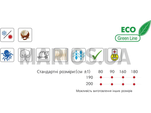 200.00см x 160.00см x 16.00см Вес 47.50кг Матрасы Допустимая нагрузка120кг Пружинный блокнет Состав1) трикотажный стеганый чехол; 2) основа - кокосовая койра; 3) настил латекс; 4) материал нетканный «Sprut»; 5) волокна хлопка; 6) волокна шерсти. Эффект зима-летоесть Ортопедический беспружинный матрас Коко латекс 160х200 - это модель с разумным соотношением цены и качества. В меру упругий и эластичный, матрас обладает высокой степенью надежности. Благодаря эффекту "зима-лето", шерсть матраса с одной стороны подарит Вам ощущение лета в холодное время года, а хлопок с другой стороны матраса будет обеспечивать контроль температуры и влажности.Все наполнители и ткани этого матраса, прошли санитарно-эпидемиологические исследования. Безопасность использования этой модели матраса подтверждены соответствующими исследованиями и заключениями.В процессе изготовления матрасов используются "здоровые технологии" - это обеспечивает оптимальный баланс тепла, вырабатываемого телом человека, благодаря основе матраса с дышащей боковой полосой стеганного чехла. Тем самым создается эффект климат-контроля - необходимый признак комфорта и гарантия отсутствия пылевых клещей и анаэробных бактерий.Самое главное, технология процесса производства исключает применение клеящих растворов - что и доказывает экологичность матрасов.Исследования матрасов класса "Премиум", подтверждает не только их безопасность, но и способность предупредить негативное изменение позвоночника или уменьшить неприятные ощущения при патологии костно-суставной системы.Благодаря своим наполнителям, матрас Коко латекс обеспечивает уникальную систему поддержки тела человека. Ведь сон - это залог успеха в завтрашнем дне, поэтому приобретая такой матрас, Вы непременно ощутите здоровый и крепкий сон! Состав: <u>1</u>)<u> трикотажный <u>стеганый чехол</u></u> с застежкой "молния" с одной торцевой стороны с объемным наполнителем, волокна хлопка и шерсти, обеспечивающие эффект "зима-лето", ткань бортовой ленты - жаккард; <u>2) основа - кокосовая койра </u>- используется в качестве основ и настилов, плиты из волокон кокосового ореха, скрепленных напылением латексных растворов. Достоинства: бактерицидные свойства, не поддается гниению, не вызывает аллергических реакций; 3)<u> настил латекс </u> - это упругий и эластичный материал, благодаря которому тело принимает оптимальное положение во время сна; 4)<u> материал нетканный «Sprut»</u> с добавками волокон кокоса. Отличается способностью увеличивать эффект упругости и долговечности поверхности матраса; 5) <u>волокна хлопка</u> - обеспечивает естественный баланс влаги, способствует гигиене и оптимальному микроклимату среды; 6) <u>волокна шерсти</u> - значительно улучшает качество матрасов, за счет свойств создавать оптимальный микроклимат и сохранять тепло. Технические характеристики: допустимая нагрузка на одно спальное место до 120 кг; регламентированная высота матраса: 16 см; габаритная высота матраса: 20 см; вес матраса: 47,5 кг. Потребительские свойства: эффект "зима-лето"; матрас обладает ортопедическими свойствами; хорошая циркуляция воздуха (технология MaxAir); гипоаллергенность; теплогенерация; теплообмен; профилактика позвоночника; гигиеническая безопасость; съемный чехол.