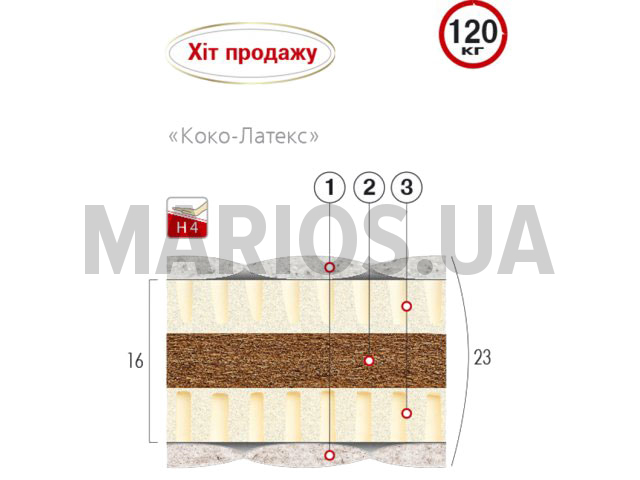 190.00см x 80.00см x 16.00см Вес 17.20кг Матрасы Допустимая нагрузка120кг Пружинный блокнет Состав1) трикотажный стеганый чехол; 2) основа - кокосовая койра; 3) настил латекс; 4) материал нетканный «Sprut»; 5) волокна хлопка; 6) волокна шерсти. Эффект зима-летоесть Матрас Коко латекс 80х190 - это ортопедическая, беспружинная модель матраса. В меру упругий и эластичный, матрас обладает выcокой степенью надежности.Все наполнители и ткани этого матраса, прошли санитарно-эпидемиологические исследования. Безопасность использования этой модели матраса подтверждены соответствующими исследованиями и заключениями.В процессе изготовления матрасов используются "здоровые технологии" - это обеспечивает оптимальный баланс тепла, вырабатываемого телом человека, благодаря основе матраса с дышащей боковой полосой стеганного чехла. Тем самым создается эффект климат-контроля - необходимый признак комфорта и гарантия отсутствия пылевых клещей и анаэробных бактерий.Самое главное, технология процесса производства исключает применение клеящих растворов - что и доказывает экологичность матрасов.Исследования матрасов класса "Премиум", подтверждает не только их безопасность, но и способность предупредить негативное изменение позвоночника или уменьшить неприятные ощущения при патологии костно-суставной системы.Благодаря своим наполнителям, матрас Коко латекс обеспечивает уникальную систему поддержки тела человека. Ведь сон - это залог успеха в завтрашнем дне, поэтому приобретая такой матрас, Вы непременно ощутите здоровый и крепкий сон! Состав: <u>1</u>)<u> трикотажный <u>стеганый чехол</u></u> с застежкой "молния" с одной торцевой стороны с объемным наполнителем, волокна хлопка и шерсти, обеспечивающие эффект "зима-лето", ткань бортовой ленты - жаккард; <u>2) основа - кокосовая койра </u>- используется в качестве основ и настилов, плиты из волокон кокосового ореха, скрепленных напылением латексных растворов. Достоинства: бактерицидные свойства, не поддается гниению, не вызывает аллергических реакций; 3)<u> настил латекс </u> - это упругий и эластичный материал, благодаря которому тело принимает оптимальное положение во время сна; 4)<u> материал нетканный «Sprut»</u> с добавками волокон кокоса. Отличается способностью увеличивать эффект упругости и долговечности поверхности матраса; 5) <u>волокна хлопка</u> - обеспечивает естественный баланс влаги, способствует гигиене и оптимальному микроклимату среды; 6) <u>волокна шерсти</u> - значительно улучшает качество матрасов, за счет свойств создавать оптимальный микроклимат и сохранять тепло. Технические характеристики: допустимая нагрузка на одно спальное место до 120 кг; регламентированная высота матраса: 16 см; габаритная высота матраса: 20 см; вес матраса: 17,2 кг. Потребительские свойства: эффект "зима-лето"; матрас обладает ортопедическими свойствами; хорошая циркуляция воздуха (технология MaxAir); гипоаллергенность; теплогенерация; теплообмен; профилактика позвоночника; гигиеническая безопасость; съемный чехол.
