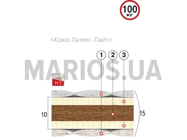 190.00см x 80.00см x 10.00см Вес 17.00кг Матрасы Допустимая нагрузка100кг Пружинный блокнет Состав1) стеганый чехол на объемном наполнителе "Sprut" с примесью волокон шерсти; 2) настил латекс; 3) кокосовая койра; 4) настил латекс; 5) стеганый чехол на объемном наполнителе "Sprut" с примесью волокон хлопка. Эффект зима-летоесть Двухсторонний ортопедический матрас Коко латекс лайт 80х190 - это качественная беспружинная модель, в состав которой входят натуральные экологически чистые материалы, комбинация которых обеспечит Вам комфортный отдых и сладкие сны.Залог успеха - это не только современный взгляд на жизнь, а и качественный, здоровый сон! Состав: <u>стеганый чехол на объемном наполнителе "Sprut"</u>, с примесью волокон шерсти и хлопка, что обеспечивает эффект "зима-лето", основная ткань - трикотаж, ткань бортовой ленты - жаккард; <u>кокосовая койра</u> - основа матраса, являющаяся натуральным, экологически чистым материалом из волокон кокосового ореха, который обладает влагозащитными, антибактериальными и бактерицидными свойствами, не поддается деформации и придает упругости матрасу; <u>настил латекс</u> - материал, имеющий в своем составе сок гевеи, обладающий высокой эластичностью и эргономичностью, плюс износостойкость, гипоаллергенность и гигиеничность. Технические характеристики: допустимая нагрузка на одно спальное место до 100 кг; регламентированная высота матраса: 10 см; габаритная высота матраса: 13 см; вес матраса: 17 кг. Потребительские свойства: эффект "зима-лето"; матрас обладает ортопедическими свойствами; природная циркуляция воздуха - технология "MaxAir"; подтвержденная гигиеническая безопасность; профилактика позвоночника; натуральные компоненты; съемный чехол.