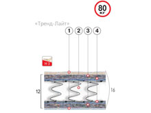 Состав: <u>жаккардовый стеганый чехол с наполнителем "Sprut" с волокнами шерсти и хлопка (эффект "зима-лето"). Данный наполнитель имеет способность увеличивать эффект упругости и долговечности матраса;<u>пружинный блок Bonnell с диаметром опорного витка 90мм, высота пружин 80мм( плотность от 100шт/м2) - это прочные конусовидные пружины, соединенные между собой, благодаря которым равномерно распределяется вес человека по всей поверхности, поддерживая позвоночник в правильном положении;<u>нетканый настил "Thermoflex" - эластичный и износостойкий материал, который имеет отличную воздухопроницаемость. Увеличивает высоту матраса и способствует правильному распределению нагрузки на поверхность матраса; жесткий настил "Thermofelt" - продукт термического соединения волокон, который создает стабильную защиту мягких настилов от металлической структуры пружинного блока.