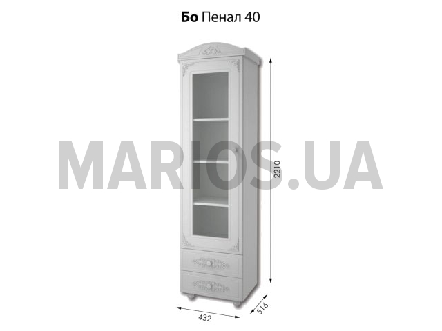 43.20см x 51.60см x 221.00см Характеристики мебели Материал ДСП, МДФ Пенал Богема 40 открытый. Состоит из шкафчика с полочками и двух выдвижных ящиков. Материал корпуса: ДСП. Материал фасада: МДФ. Цвет: белый.