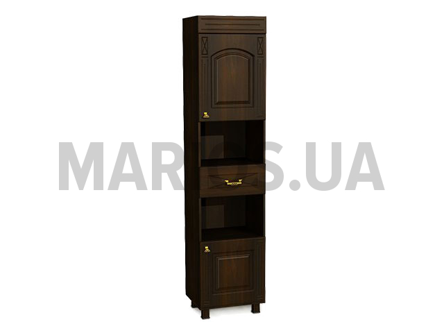 Материал - высококачественная ДСП 16мм немецкого концерна "Кроно Украина". Материал фасадов - МДФ с фрезеровкой. Ручки - цвета "бронза". Доступны два варианта цветового исполнения: "орех" и "клен". Цвет ножек полностью совпадает с цветом всего изделия. Размеры пенала ЭМ-3/1 Элизабет