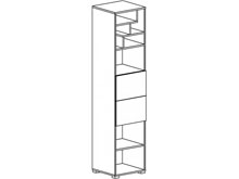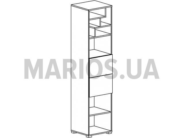 45.00см x 44.00см x 197.00см Характеристики мебели Материал ДСП 16 мм Пенал Labirint 4. Наполнение: полки, два выдвижных ящика. На дверях установлен механизм плавного закрывания, на ящиках - роликовые направляющие. Материал: ДСП 16 мм.