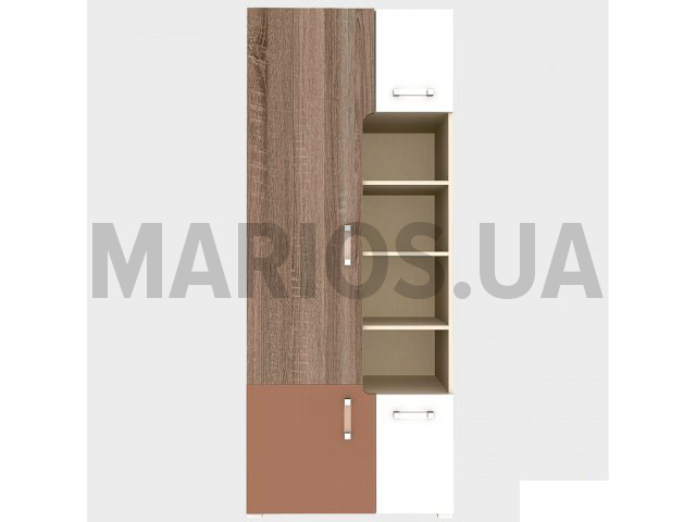 80.00см x 40.00см x 195.00см Характеристики мебели Материал ламинированное ДСП 16 мм и 22 мм Пенал Mirage D. Состоит из шкафчика с полочками и открытых полочек. Корпус изготовлен из ламинированной плиты ДСП толщиной 16 мм и 22мм, используется кромка ABS - 2 мм и 0,45 мм. На двери шкафа установлены механизмы плавного закрывания. Цвет: дуб санд/дуб сонома трюфель/белый.