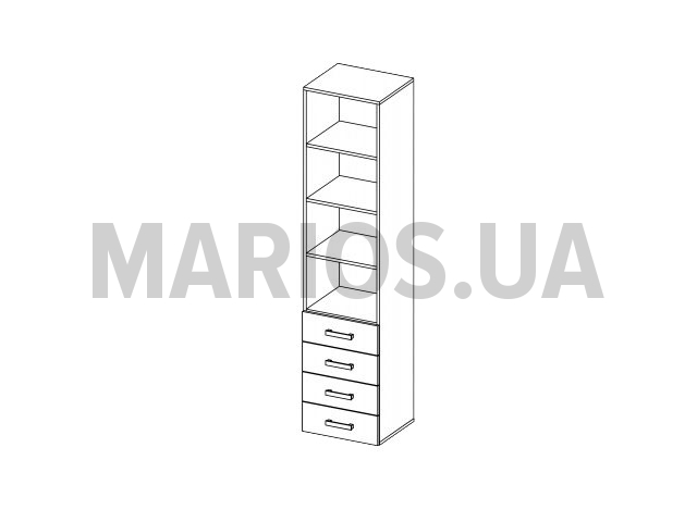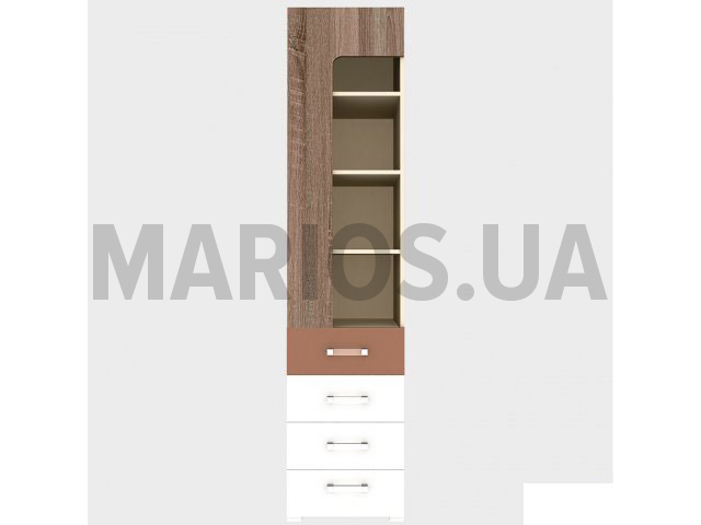 45.00см x 40.00см x 195.00см Характеристики мебели Материал ламинированное ДСП 16 мм и 22 мм Пенал Mirage G. Состоит из открытых полочек и выдвижных ящиков. Корпус изготовлен из ламинированной плиты ДСП толщиной 16 мм и 22мм, используется кромка ABS - 2 мм и 0,45 мм. На ящики установлены роликовые направляющие. Цвет: дуб санд/дуб сонома трюфель/белый.