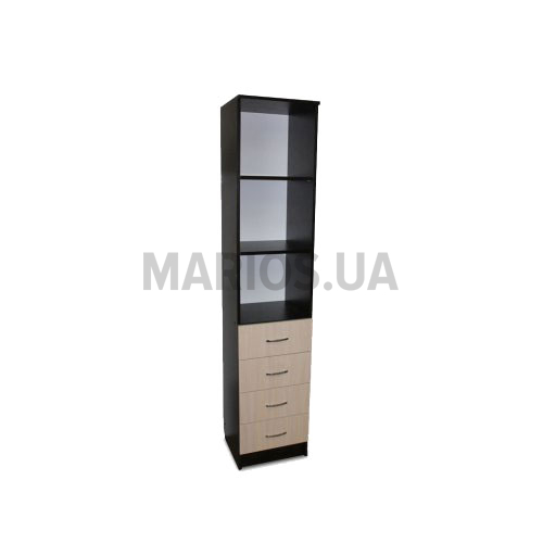 40.00см x 38.00см x 190.00см Характеристики мебели Материал ДСП, ПВХ Офисный пенал ОН 05/1 40х38х190 оснащен четырьмя выдвижными ящиками и тремя открытыми навесными полками. В такой пенал можно удобно разместить все необходимые офисные документы, папки и бумаги. Кромка деталей изготовлена из ПВХ 0,5 мм. В ящиках используются роликовые направляющие, а за доплату можно установить телескопические. Широкая цветовая гамма, предоставленная производителем, дает возможность выбрать тот цвет и оттенок, который гармонично впишется в офисный интерьер. За дополнительную плату изделие можно выполнить в нестандартном цвете. Материалы: ДСП 16 мм Торцы ПВХ 2, ПВХ 0,5 мм