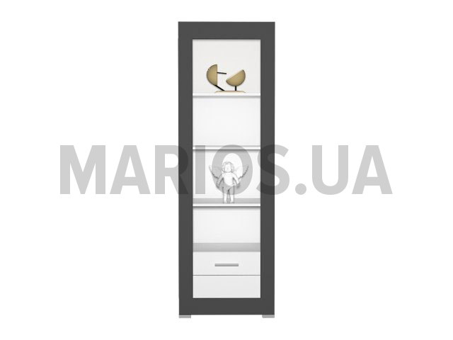 60.00см x 40.50см x 196.00см Характеристики мебели Материал ламинированная плита МДФ - 19 мм, ДСП - 16 мм Пенал Silver I. Наполнение: полки. Корпус: ламинированная плита ДСП толщиной 16 мм. Кромка: 0,45 мм. Фасад: ламинированная плита МДФ - 19 мм. На дверях установлен механизм плавного закрывания. Цвет корпуса: белый. Цвет фасада: белый глянец/графит матовый.