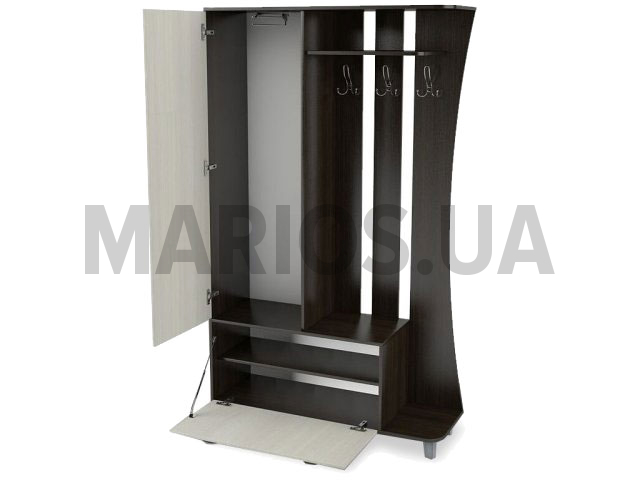 35.00см x 120.00см x 205.00см Характеристики мебели Материал ламинированная ДСП Прихожая-13 обеспечит удобное и комфортное хранение верхней одежды и обуви. Данная модель включает в себя открытую вешалку с крючками и полкой для головных уборов, а также однодверный шкаф, оснащенный штангой для плечиков. В нижней зоне располагается вместительная обувная тумба. В производстве используются качественные и экологически чистые материалы. Прихожая изготовлена из ламинированной ДСП толщиной 16 мм. Торцы облицованы кромкой из меламина 0,5 мм. За отдельную плату изделие может быть изготовлено в кромке из ПВХ.