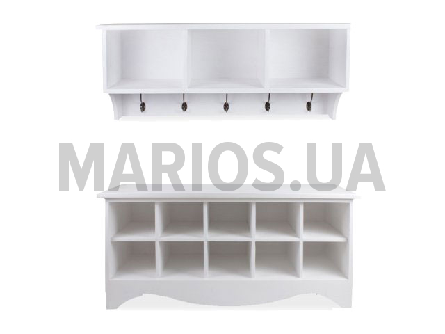 105.00см x 40.00см x 0.00см Вес0.00кг Характеристики мебели Материалнатуральное дерево Прихожая Лондон. Изготовлена из натурального дерева. Состоит из двух элементов: полка для одежды из трех ячеек для головных уборов и пяти крючков, шкафа для обуви. Цвет: белый.