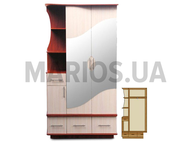 40.00см x 113.00см x 224.00см Характеристики мебели МатериалДСП Прихожая Титаник – отличный вариант для небольшого помещения.Данная модель состоит из двухдверного шкафа и отделения с тумбой и открытыми радиусными полочками. Шкаф оснащен полкой и горизонтальной штангой для хранения одежды на плечиках. Нижнюю часть прихожей составляют три выдвижных ящика, которые удобно использовать для перчаток, головных уборов и других мелких вещей.По Вашему желанию прихожая может быть изготовлена в любом цвете из предложенной палитры. На нестандартный цвет из палитры Swisspan действует надбавка.В данной модели используется серийная фурнитура. Материал: ЛДСП
