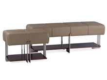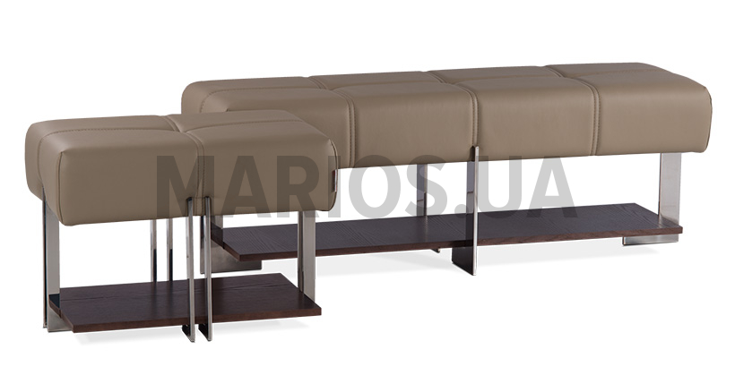 каркас - неражавеющая полированная сталь. Столы приставные, а также пуфы могут быть укомплектованы столешницами из фанеры, натурального дерева или стекла.